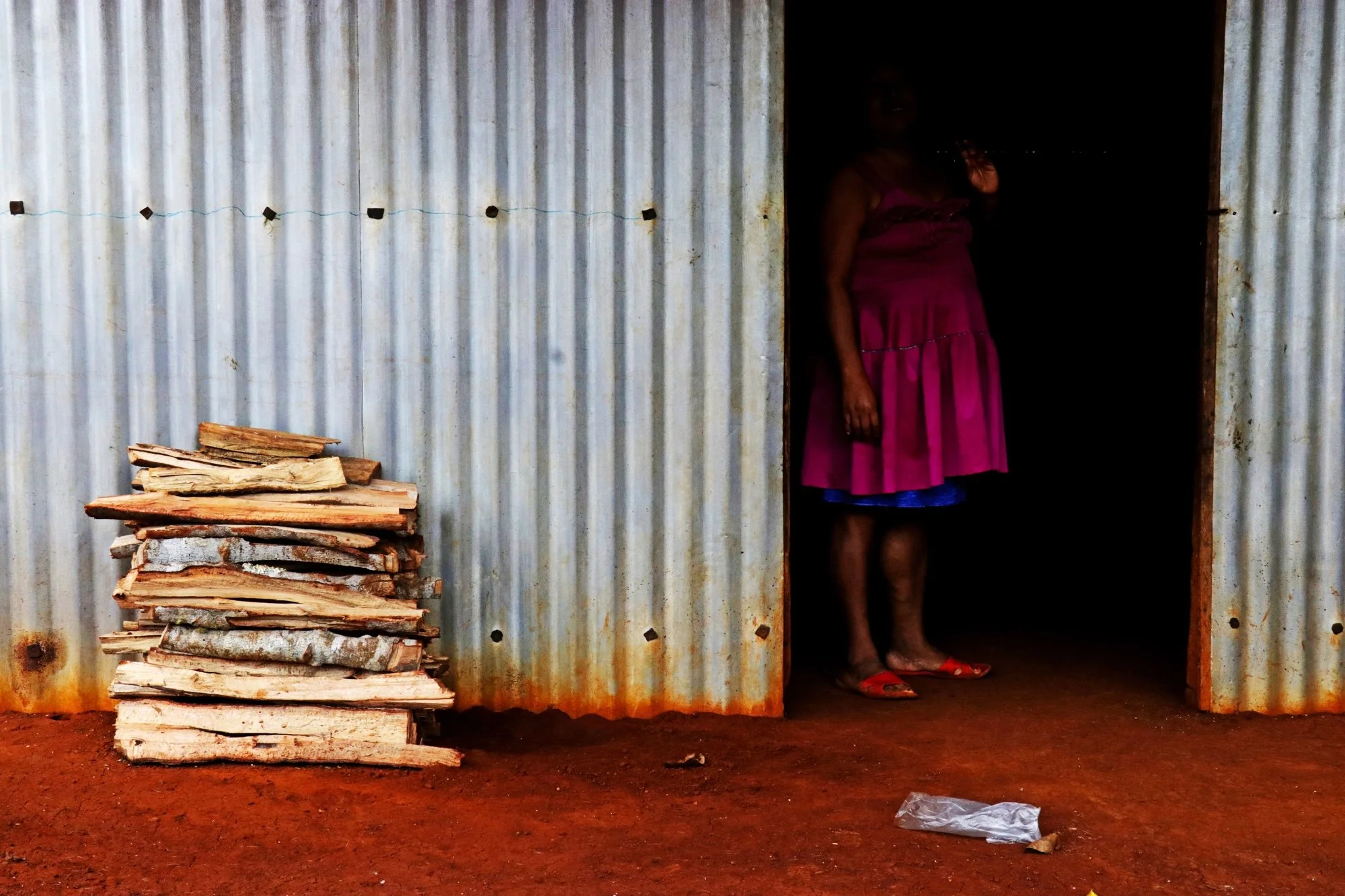 A woman from the Popoluca community in southern Veracruz looks out from inside her home, October 2019. Photo © Iván Sánchez.